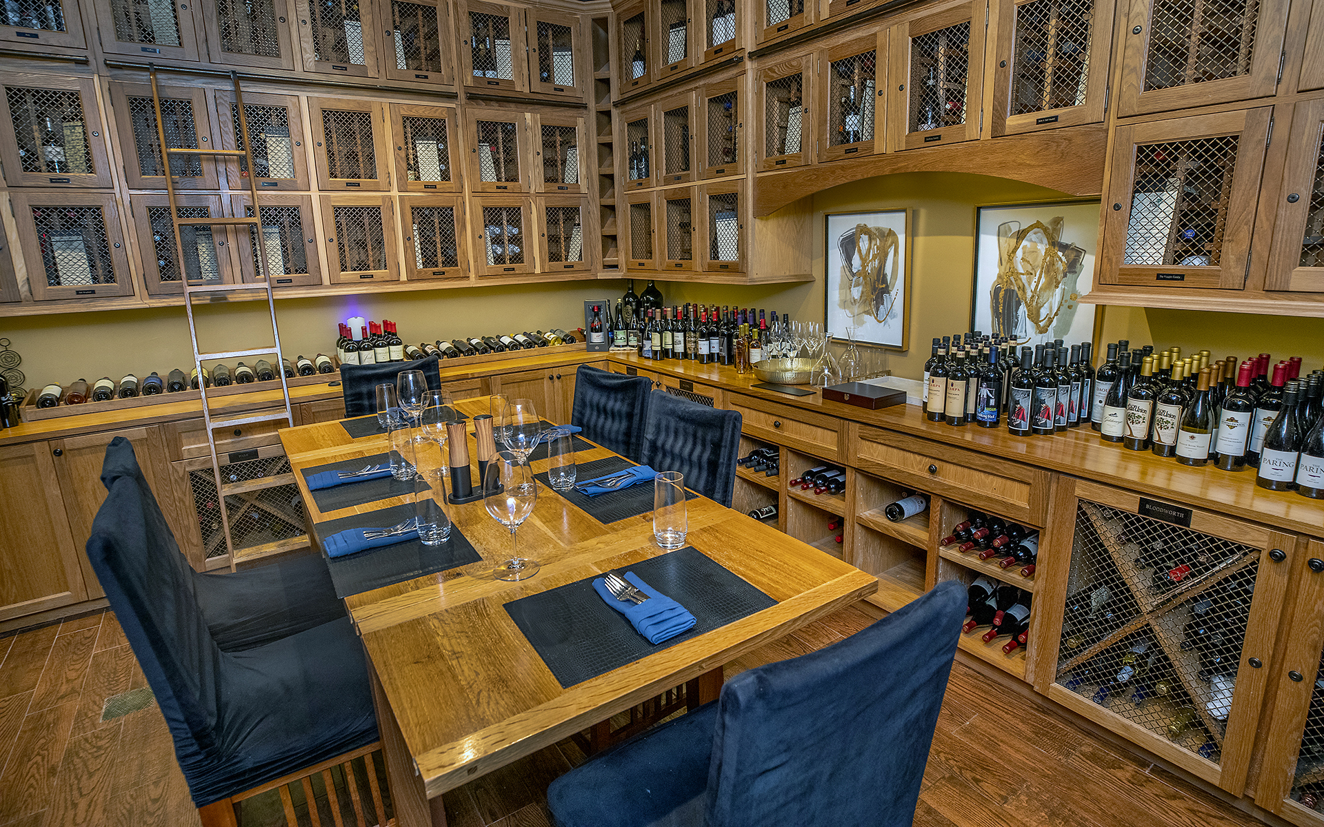 The Wine Room is home to 58 wine lockers, each available for one-year rental periods and able to hold up to 12 bottles of your favorite wines. The room's private dining table can comfortably seat up to eight guests for a truly unique dining experience.